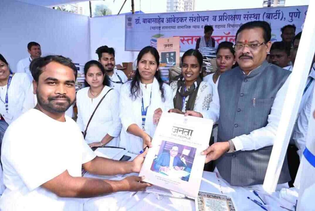बार्टी पुस्तक स्टॉलवर ग्रंथ खरेदीसाठी भीम अनुयायांची प्रचंड गर्दी हजारो ग्रंथाची विक्री